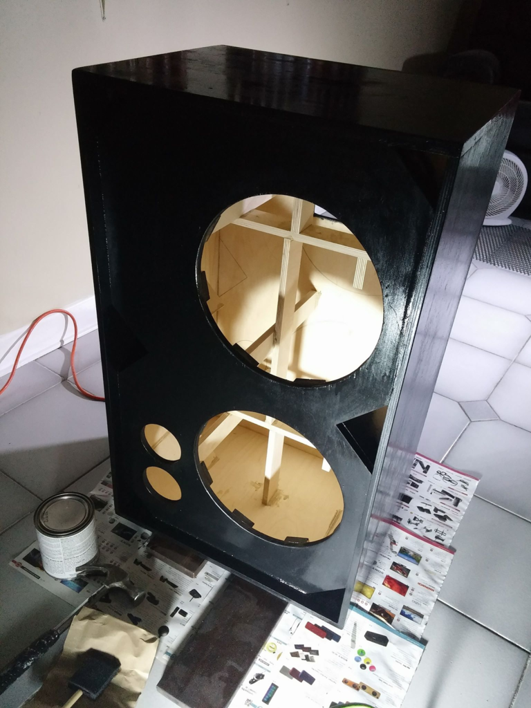 DONE !!! Well.. missing the metal corners, the pain dries, i can't beleive how good it is, i'm really satisfied! I will test it tomorow, louder.. at the jamspace :) There's a shit ton of air coming out of the unused 1/4" jacks hahaha like.. a lot! I'll have the plugs soon.. 30223668_10151132860...
