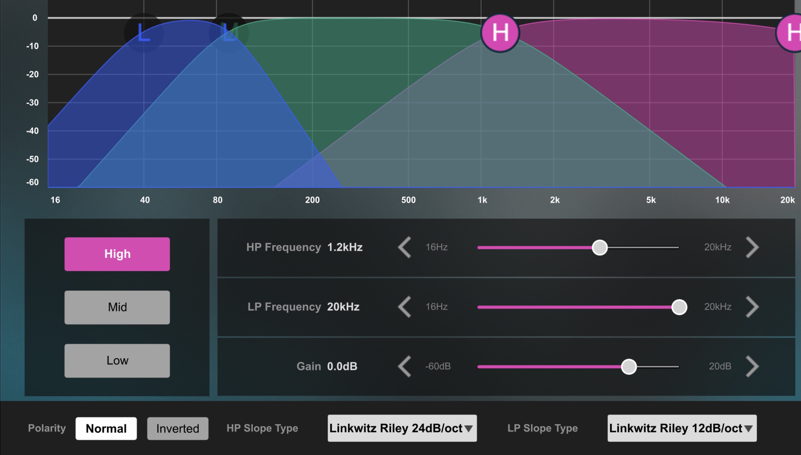 These were the xover settings at test.