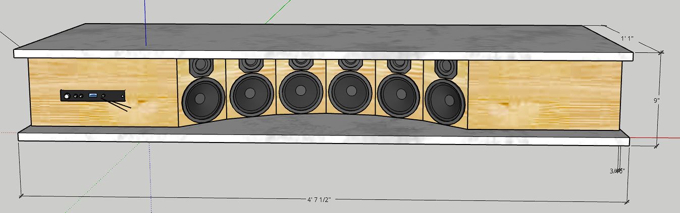 I am designing/making a floating center channel shelf. The center channel is a SLA design from Bill Fitzmaurice. I am also making a portion of the cabinet a 8" subwoofer. I would like to make sure that i have selected the correct bass for the cabinet space. I will be attaching 4 satellite speak...