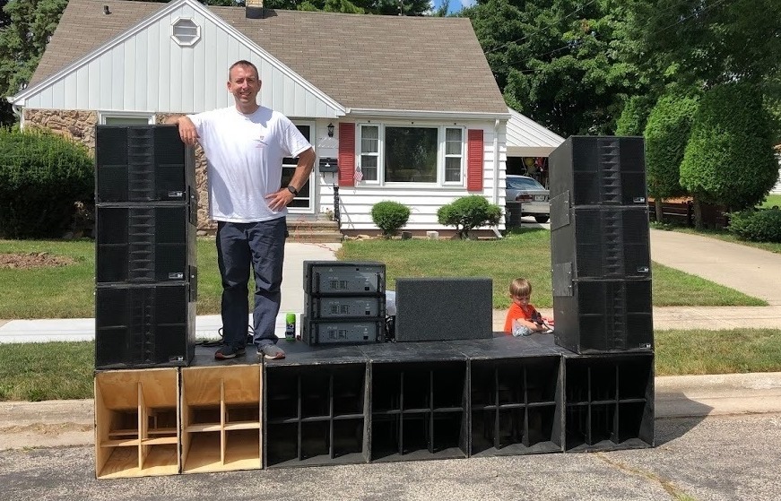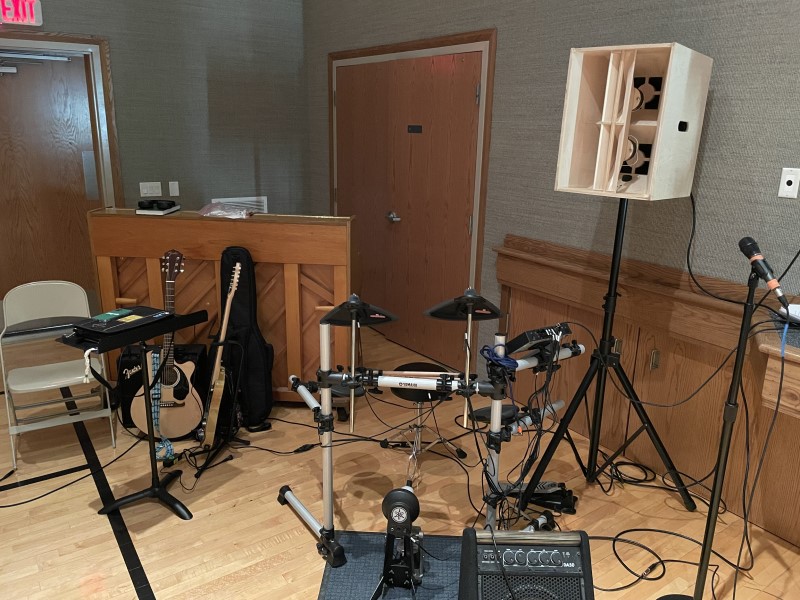 Not the best set up, but it worked... Practice, and you can see both OTops with the T39s on the far end of the stage. One of the youth running front of house... with a watchful eye