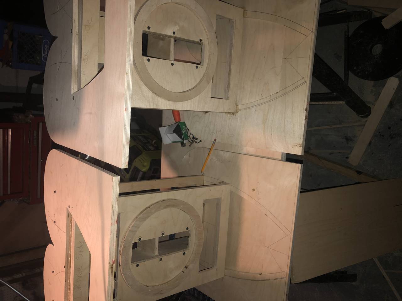 Soooo,I have wasted a lot of time and 2 1/2 sheets of Baltic Birch and I still can’t figure out how and where.After applying the top and bottom for a new set of DR250’s, the baffle extends 1/4 inch too far into the driver chamber so instead of the baffle and “about half” of the first flange extending over the access opening I have the baffle and a whole flange extending over the opening,which also leaves the baffle too wide and extending outside of the arc lines.At this point I can only take the loss and start all over.Im sure someone is curious,the reason I’m doing the old plans is I have 4 of the old style and I wanna keep everything uniform,I don’t wanna appear to have 3 different speakers when I use them all together.Grrrrrrr.....