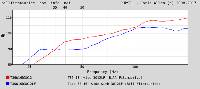 You see that 6dB difference at 50Hz? that is equal to twice as many cabs. That mean 2 T39 are as loud as 4 T45 at 50Hz.