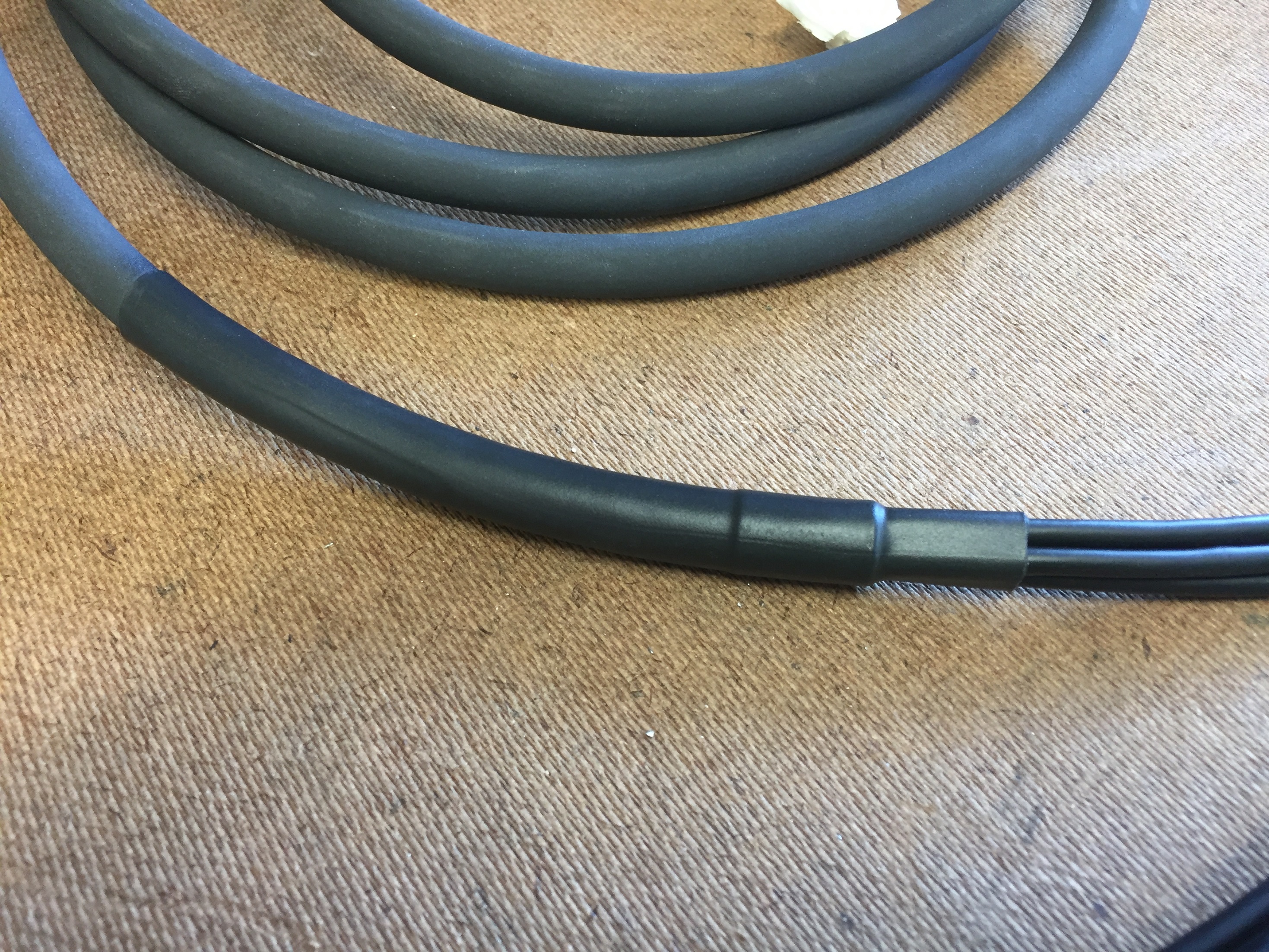 Usually, I just put a larger piece of heat shrink over the area where they fan out....that works fine, but I've never liked the look of the transition. So, this time I put a smaller piece of heat shrink to act as a collar over the transition from snake to fan, then covered that with the longer and larger shrink. I really like this much better.