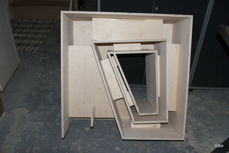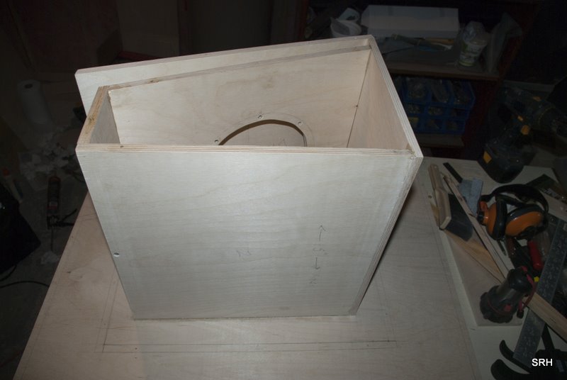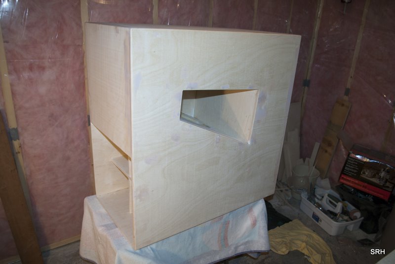 Here are some pictures from my recent 16" Table Tuba Build. Pretty much followed Bill's instructions. Cut most panels using a panel jig on my table saw as per Bill's design. The panels turned out pretty accurate and after the first few panels I started contructing without screws. I simply glued and clamped.. including the final side. Installed the 8" Dayton recommended driver. Powerred the unit with a vintage Audio Design PA100 MOSFET 100 watt per channel mono bridged power amp. Sounds great!