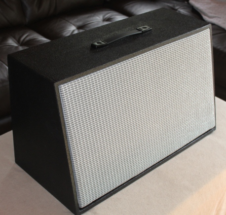 So, I finished my first BFM design! XF212. Black Duratex finish, Eminence The Governor 12" drivers, black and silver sparkle grill (vintage Fender style), convertible back cab.