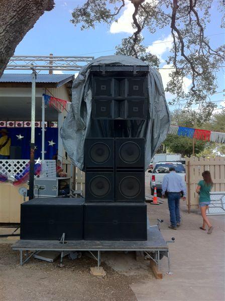 Played at the local County Fair yesterday. Sound was provided by a guy I know. JBL Vertecs, double 15s, and JBL subs. Gotta' admit, it was fun to play without having to set anything up. They truly catered to us. Monitor tech gave us just what we wanted and everybody said that FOH was good.