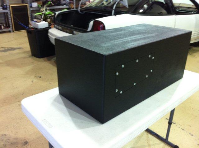 Including the amp ($64) and about $5 of wire, $2 screws, $9 of Duratex, shipping and the previously mentioned building costs, I spent a total of about $200, and I have a complete sub enclosure and amp ready to drop in a trunk, and will compete with any entry level dual 10" or single 12" commercial sub and amp, which would cost more like $600 with sub and amp, and it weight at least 20 lbs less.