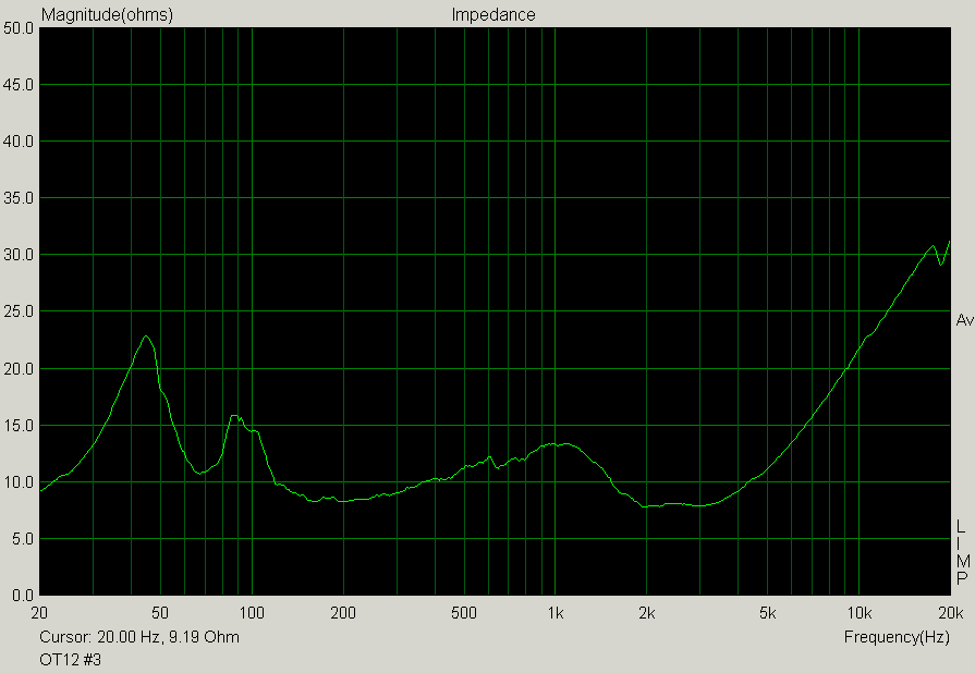 One of the pair is properly sealed, screws on the back all tight. The impedance plot looks like this: