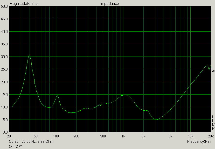 One of the pair is properly sealed, screws on the back all tight. The impedance plot looks like this: