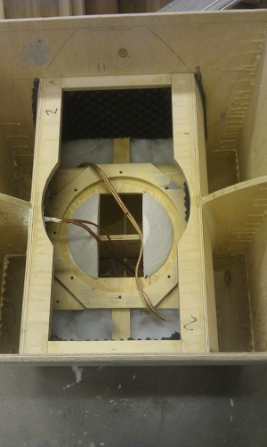 So, now the woodworking is done, atleast for now, started to put in dampening material and drivers today. The plans say I should put foam dampening in the driverchamber, and polyfill around the throathorn, I´ve done that, but after that the plans are a bit unclear, it says to put foam on the backpanel of the piezo-modules, on the woofer side, but it doesnt mention anything about what to do when you have the compressiondriver module, which doesnt have a closed back, because of the CD´s themselves. So the outside of the compressionhorn and the inside of the whole module is a part of the driver chamber.