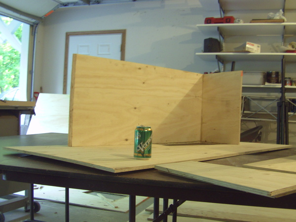 setup workshop today. building at grandma's house cause it is air conditioned. humidity doesn't go well with pl. bought 8 sheets of plywood, totaling 254$ and some extra tubes of pl. i will probably build my rack and flight cases first as i wait for the kits to arrive!