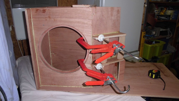 I glueed the panel 1 and the baffle in place on the first cab. Have to wait until tommorow for the second cab as i used all my clamps for this one.