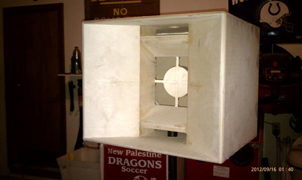Typical of me, I put my energy into whatever project happen to be working on, that is, after the sorrow hangovers subside. So what progress have we made so far? Well, let's see. When the haze above cleared, I realized that it was time to mount the driver spacer. Jumping in, I looked at the plans and thought.. "Just how weird is it going to be, mounting the driver to the plate after it is mounted to the baffle?". I wanted the 1/8 space to be uniform after all.