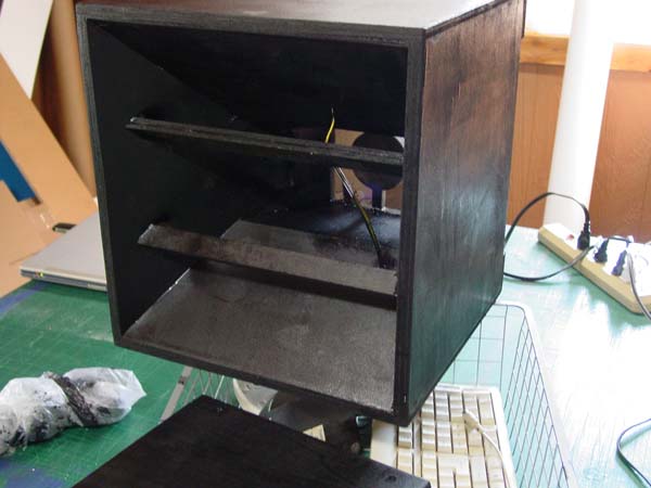 The other is the glued in horn section, with a little scraping done. Top and bottom fronts haven't been sanded flat yet. The hole is for the tweeter wire.