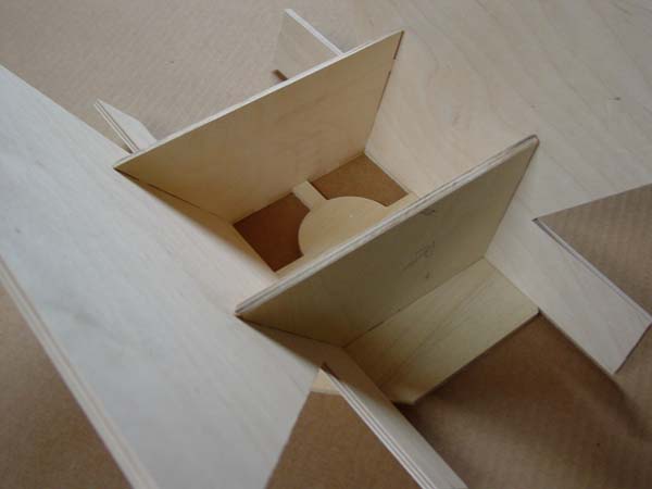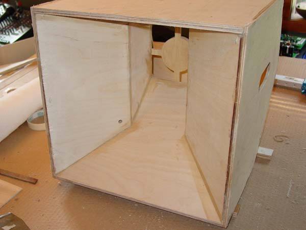 The other is the glued in horn section, with a little scraping done. Top and bottom fronts haven't been sanded flat yet. The hole is for the tweeter wire.