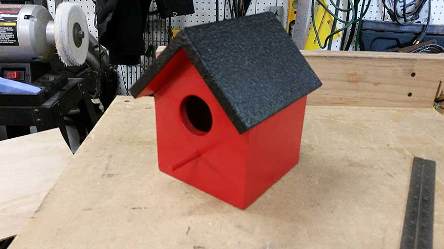 Haha! I about fell out of my garage drinkin' chair! I then reminded her that this wasn't a kitchen and there was no way she was gonna be able to fix me a sammich in there. So I shooed her away, all the while awkwardly stretching my body over the scraps on the table so that she couldn't see that a birdhouse was indeed possible.