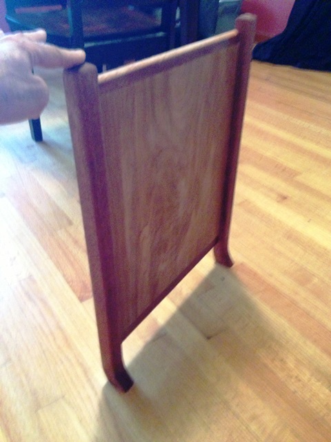 The legs are actually not just mounted at the bottom. They will run full length from the top, and have a curved foot that extends outside the edge of the box. (Read lots of planning 4/4 stock, tedious pattern following router work, and biscuits.