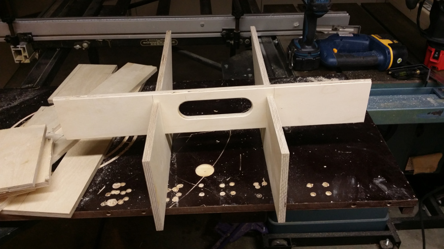 It has been kind of slow around here, but I finally got some time to work on the cabinets today. Last week I finished the 6-10 braces by slotting them adn putting a handle in the cross brace