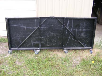It's made from 1" thinwall tube, four casters, seven hinges and a sheet of 3/4" plywood.