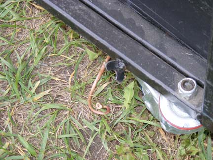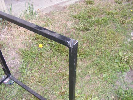 In Photo 109 you can see a closeup of one of the wing nuts (Wing bolt?) that holds everything together when folded. It's simply a 1/4" bolt that I welded half of a washer to the head forming the wings for tightening.