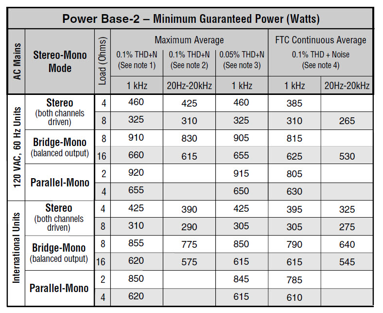 minimums for standard 1 kHz power. For more information,
