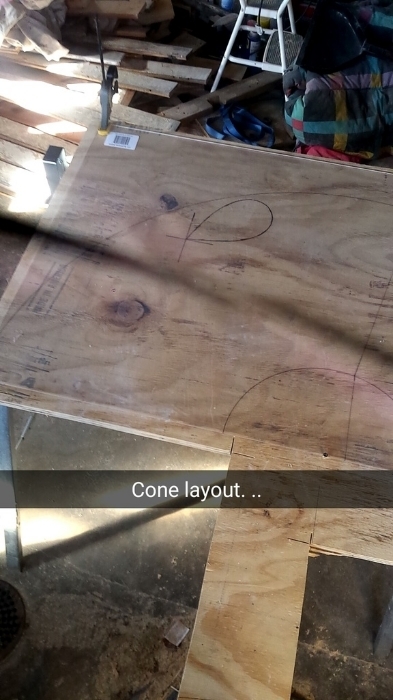 You can find calculators and spreadsheets online to layout your cone shape in a flat pattern. I cheated and used Autodesk Inventor and it's sheet-metal capabilities to model my cone and the teardrop where the inlet will be. I then transferred those flat pattern dimensions to a sheet of 0.08" thick acrylic from Menards for ~$20.