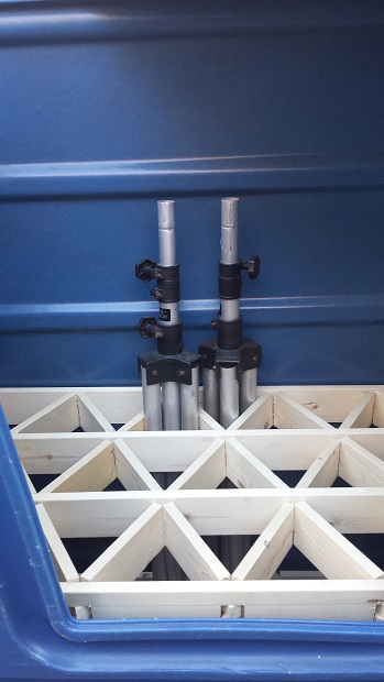 Here's another couple pictures. There are 27 triangular slots for the tripod stands. The extra vertical spaces are handy for cross tubes and tees.
