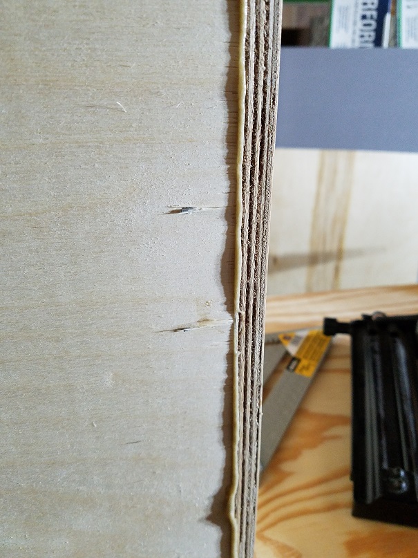 I had 2 brad nails shoot thru the side of Panel 1, but once the joint sets I'll grind those down and fill in with Bondo or wood filler.