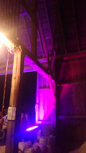 I should of snapped a picture of looking into the barn door. The one lights was shining up, and highlighting some of the entry way and the 2nd light was on the far wall, it looked really good, and was bright enough to overcome the work lights and Christmas lights that were also hung.