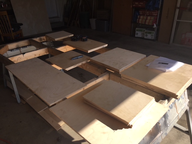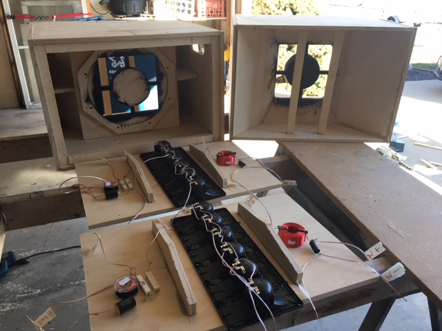 Started on another pair of OT12 this weekend. These are “regular” model, 1/2” BB, flat array, Delta Pro 12-450A, Duratex. It had been a while since anyone posted a thread building these so I thought I’d grab a couple pics. I started on Saturday morning with a trip to the lumber yard. I was pleasantly surprised to learn the price of a sheet of 5x5 BB had actually went down to $27. Working by myself in the garage I made good progress over the weekend, using a kit from Leyland at speaker hardware.
