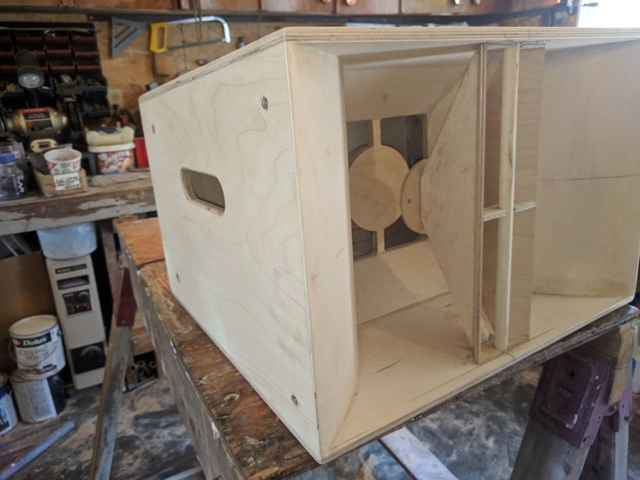 I Took all of bills plans and transposed into AutoCAD and hand all thr ply cut at a cabinet shop and upgraded the upper and lower stack bracket cut from 6061-T6 Aluminum at a local water jet shop. I had the coating done at shop that sprays a lineX comparable product. I had other speakers done with duratex but imo thr lineX product is far superior.