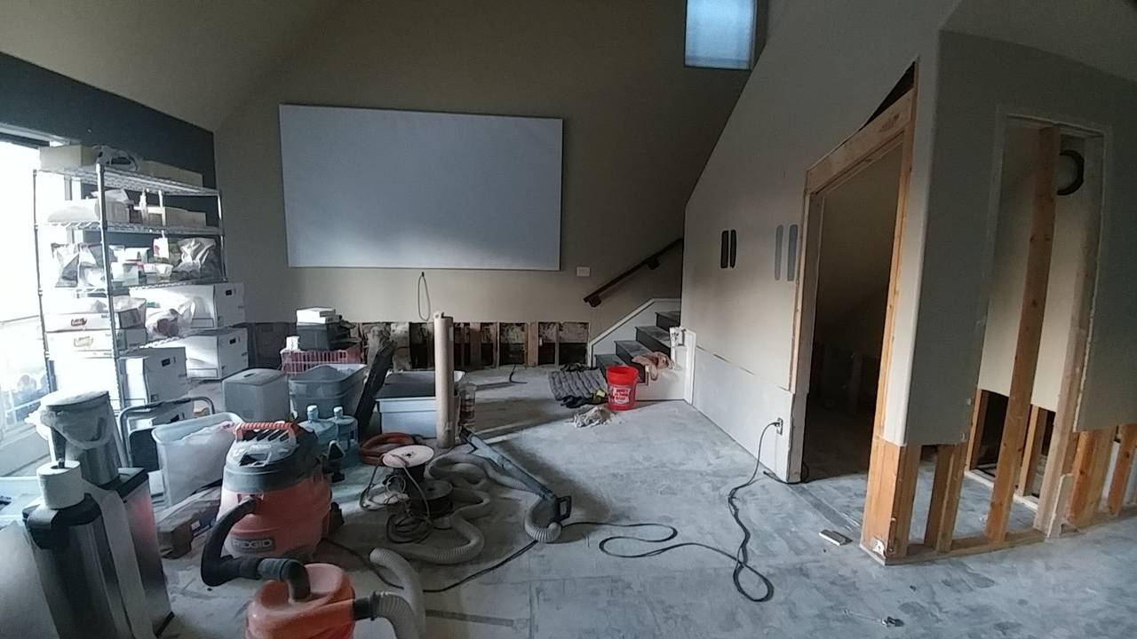 Ok we are finally rebuilding our home after our house flooded on June 21st. I am taking advantage and running wires behind our viewing wall in order to move HT equipment to a closet under stairs that are off to the right side of living room. Attached is a pic of my living room. My wife would like no wires showing and her preference would be no speakers showing as well. I told her that the only wires will be from wall to speakers.