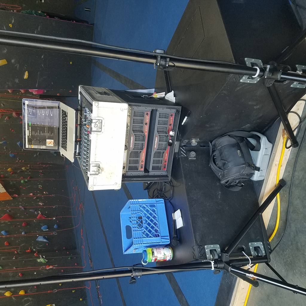 My kids (and me, kind of...) all climb at the local rock climbing gym here. Yesterday was their 20th anniversary event - competition, party, food, drink (supplied by one of our local microbreweries and a hard cider company!) They recently moved from a warehouse location to a retrofitted church in town. Very cool - bouldering in the old sanctuary, yoga studio in the chapel, weight room, team rooms, new construction for the high ropes area. My son "volunteered" me to run sound, so we hauled everything over Friday night to set up, and then ran for about 10 hours Saturday. Setup was not optimal by a long shot, but we made it work. The room is maybe 30 or 40 feet wide, at least double that long, and 45ft ceiling. Being a climbing gym, the walls all have slopes to them which probably helps. T30's v-plated out in the open, used as a table for my amp rack, mixer and a laptop. My two little JBL Control 28s on sticks to either side (OTop construction still underway). Actually sounded pretty dang good. Probably around 200 people in the main room. One of the best parts was having a mic for announcements, rules, etc. So many times at these kind of events you can't hear what's being said at all. This was clear and clean. And the Tubas are the bomb. Some one commented on how such little speakers (referring to the JBLs) could make such good loud music. So for a little demonstration, I pulled down the sub amp and the the sound just collapsed. Having a MASSIVE dose of 100HZ and below makes such a difference - you can feel it pound, but it doesn't have to rip your head off or make you yell into someone's ear to be heard. I can't wait to get my second pair built, although that would have been overkill. I didn't even push them near to their limit. Very pleased. I'll post some pics from my phone in a minute.