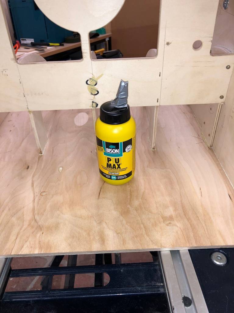 Fortunately I found a bottle of PU adhesive on the shelf. PU Max by Bison. It is strong and expands well. For Cab building is not good because it is thin glue with low viscosity, so it is liquid. It does not sit in the place as the PL or KK does.