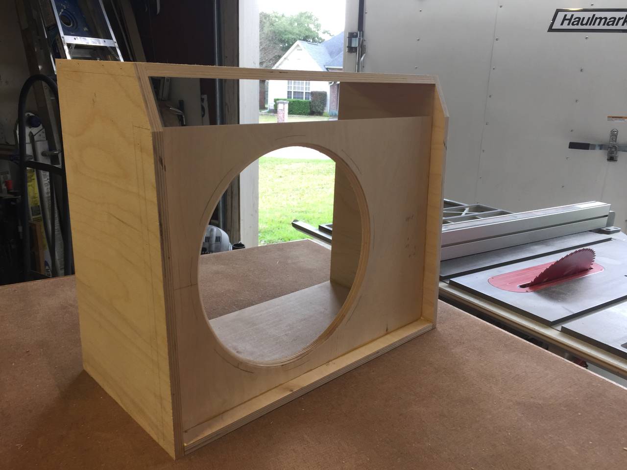 All put together....you'll notice that the top overhangs the sides. I made the angle cut to the front and put the cab together first.