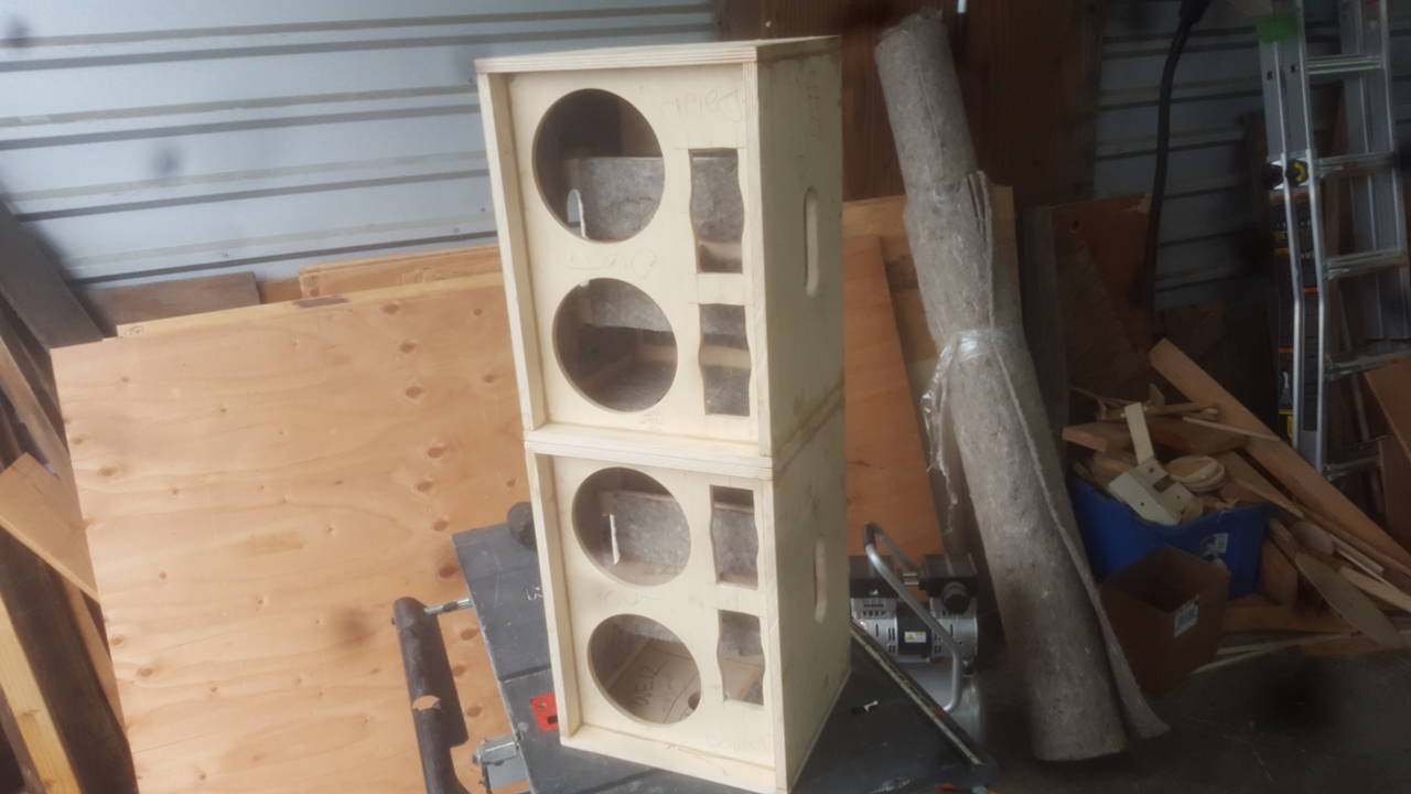 I did construct the cabs mirror imaged, so when one is up-ended and stacked on the other the tweeters are close together, hopefully retaining most of the line array benefits when configured that way.