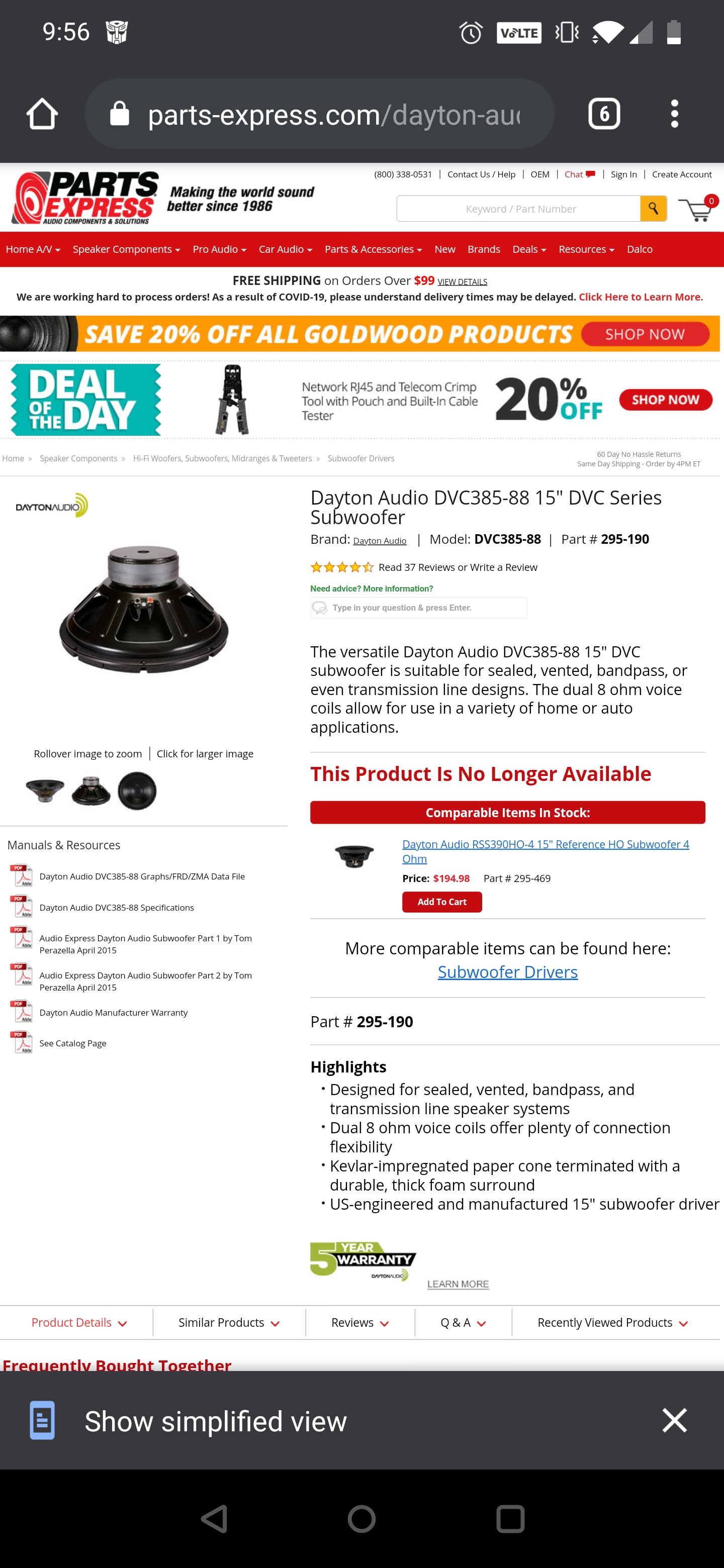 Bill Fitzmaurice wrote: Mon Jan 11, 2021 10:48 am The amp seems OK, other than not having DSP. A driver with significantly longer xmax than what you have could go louder, but if you have the DVC385-88 it has as much xmax as you can use. As for the subs you mentioned, none come remotely close to the maximum SPL or very low THD of the THT.