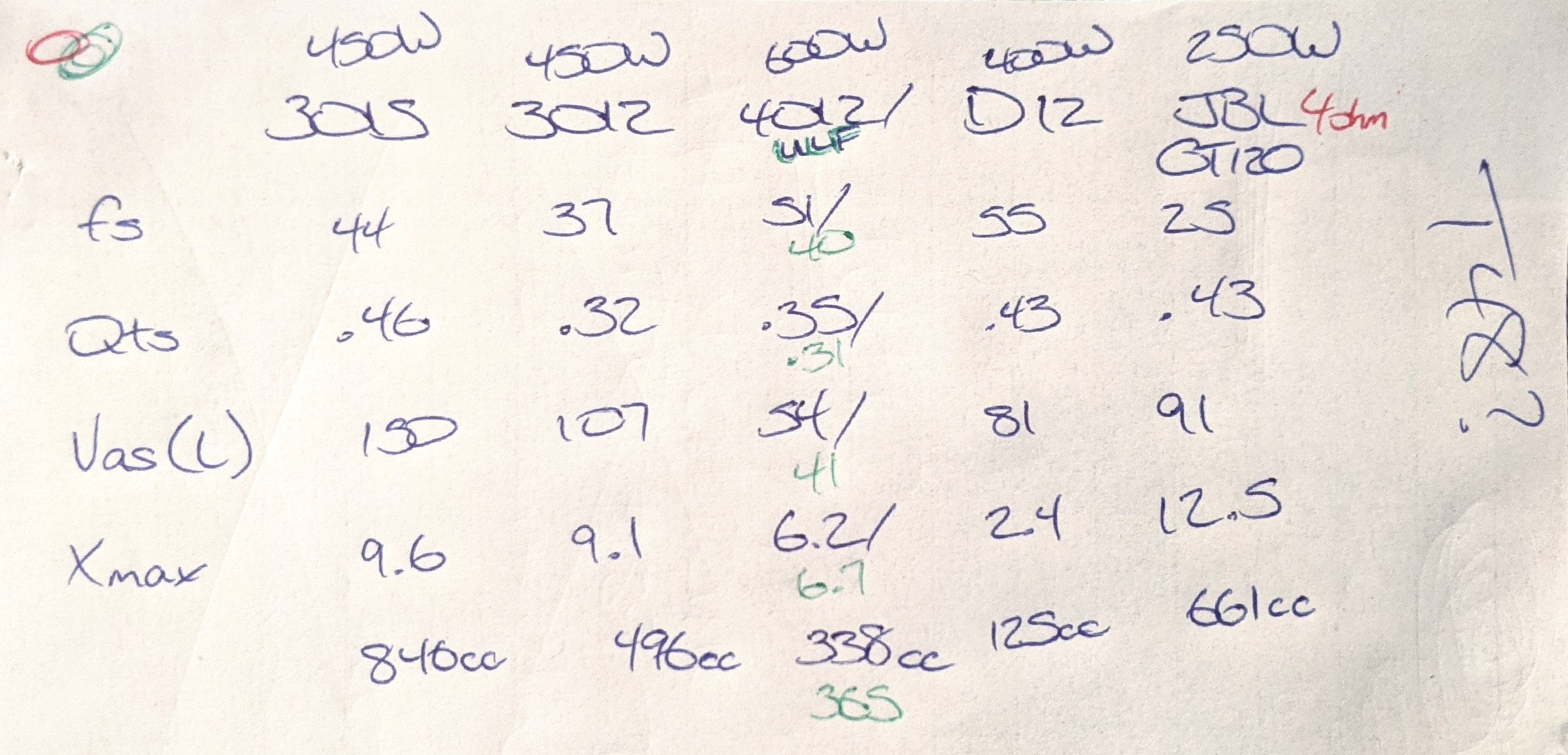 Mmmornin! I pulled a 12" JBL GT120 from my car a while back & it's been sitting around. I could always sell it for peanuts but of course I was going to look up the specs first - aside from the fs being lower than these recommended drivers, everything else lines up pretty well for a T48. Thoughts??