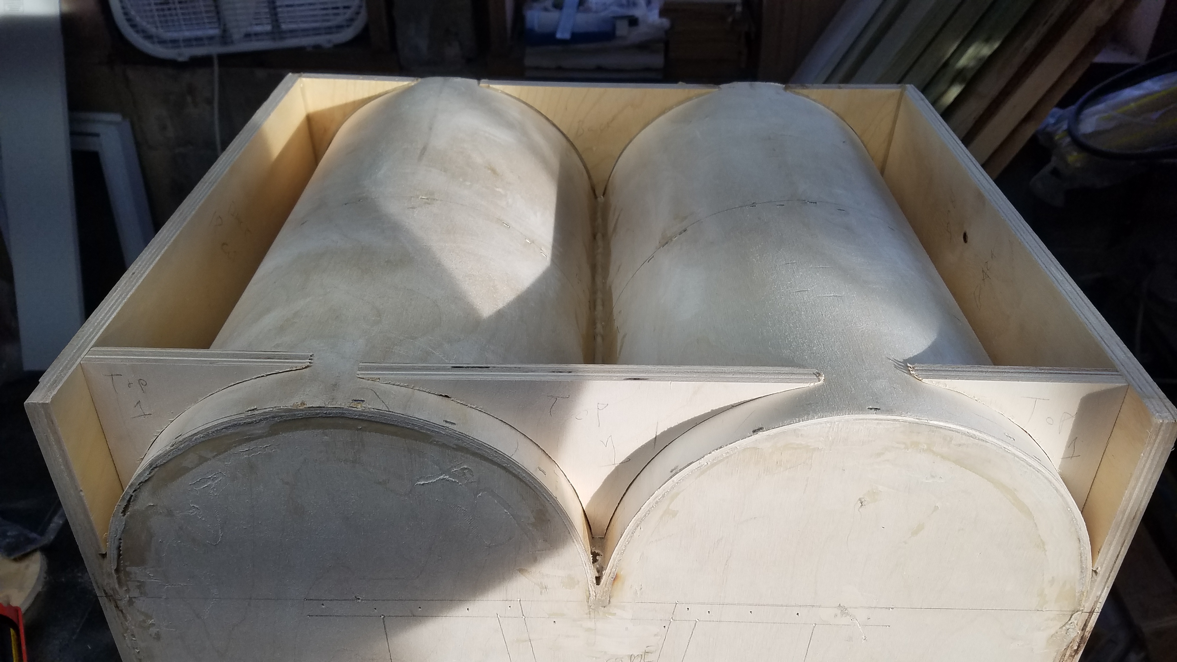 I'm filling in the buttcheeks today. I'll be attempting to make the (almost) square box version. Want to mount my speakons in there, or maybe a recessed dish with jacks in it, have not decided yet.