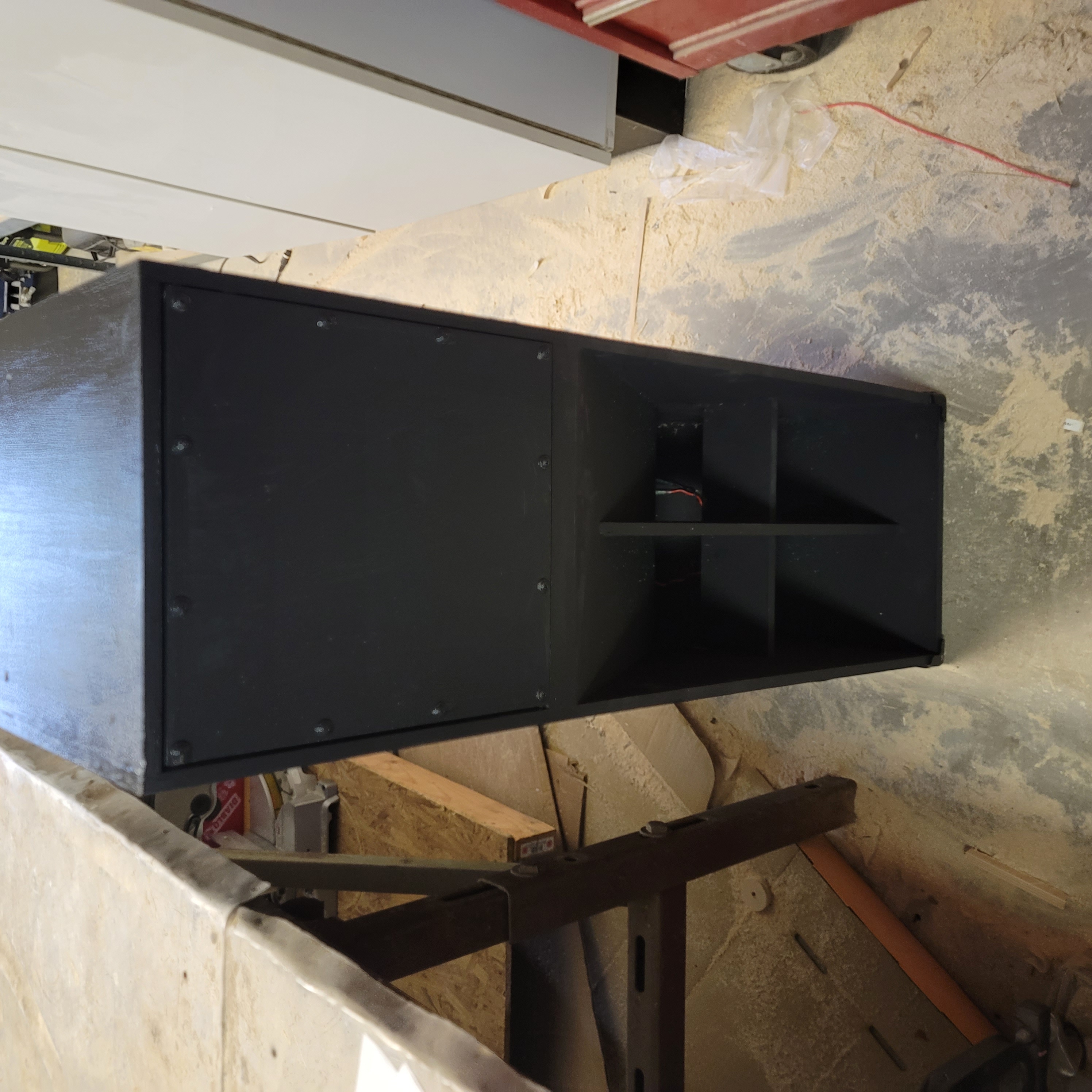 The T39s were built 14" wide with BP102. I installed the Dayton SPA500DSP in each cab, reducing the interior volume ever so slightly.