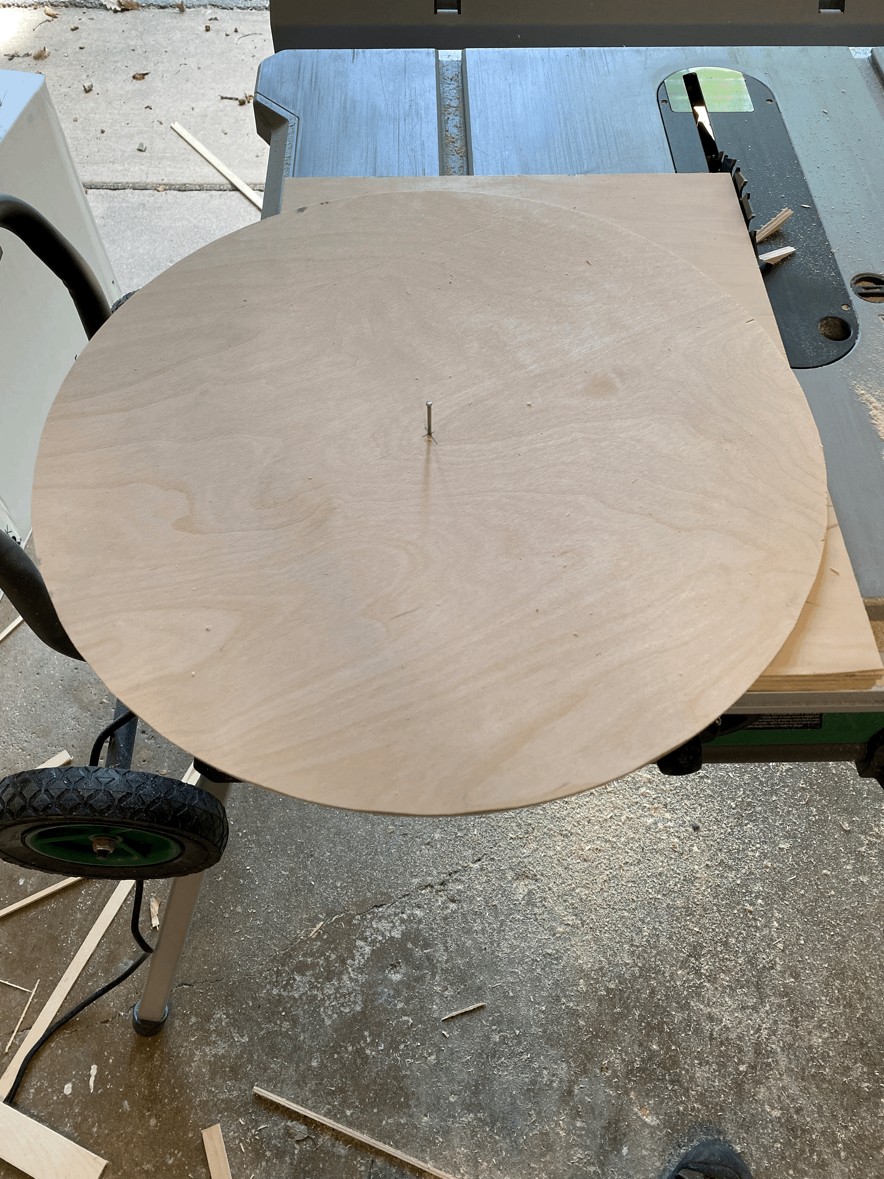 Side note on the table saw radius jig sled: Shave flat edges first, do not rotate the piece on the blade until enough material is gone that it doesn't extend to the opposite side of the blade. If you rotate with too much material left then it will pull the blade (not good).