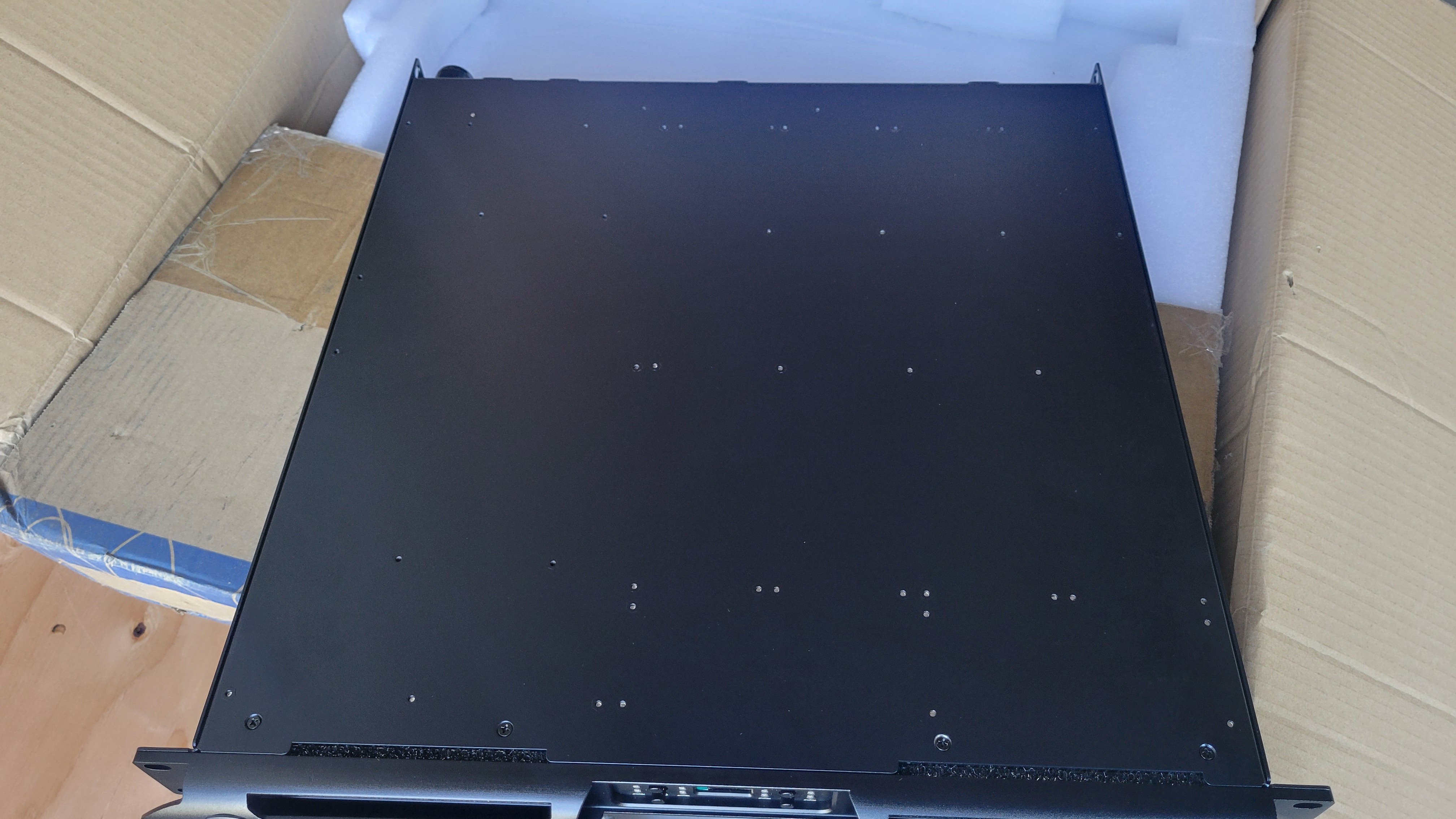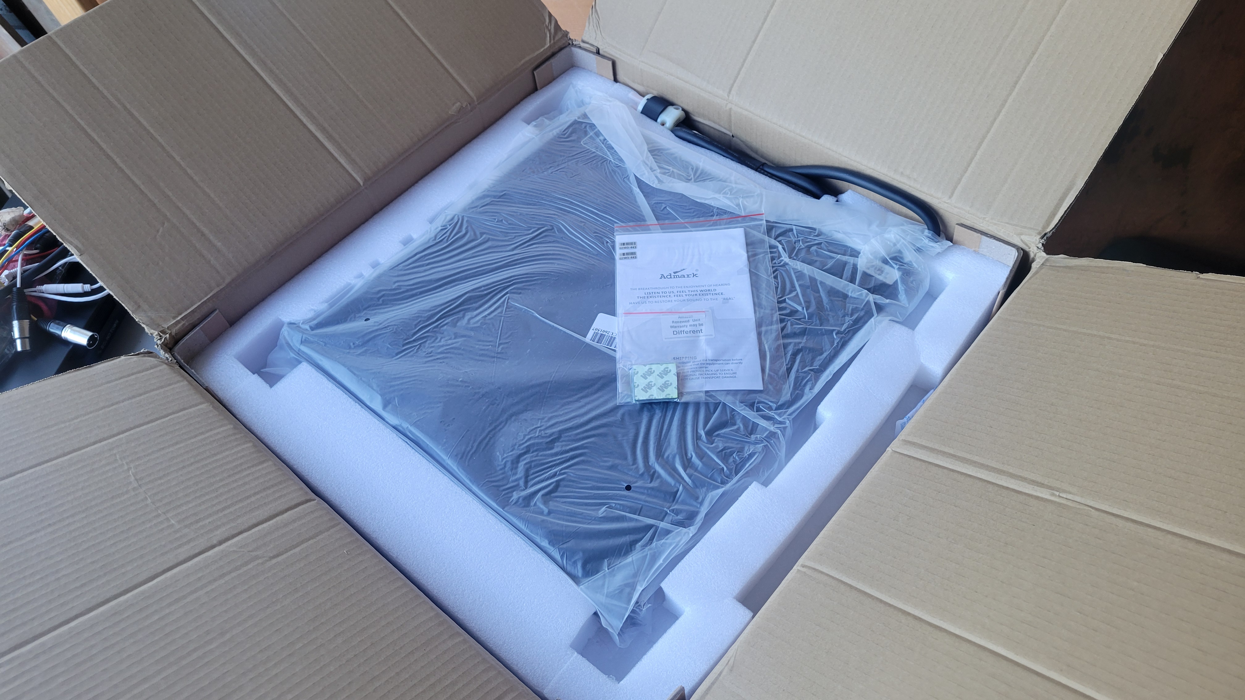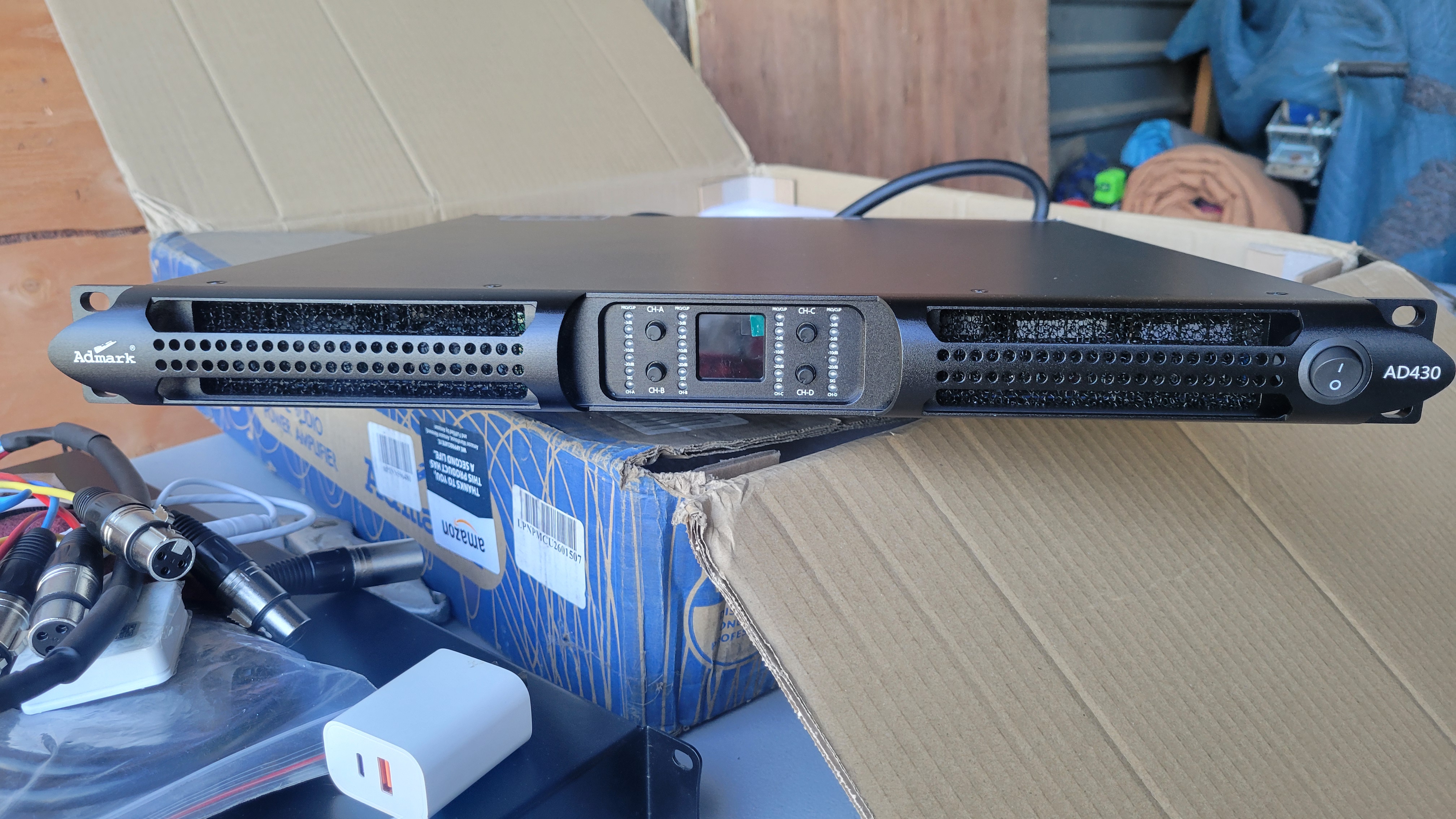 I bought this Admark AD-430 last winter. I don't know why I bought it. But, it's just so damn cool. It's four very powerful channels in a very slim 1RU chassis. Open box and in original packaging. I opened the box to verify contents, plugged it in to verify functionality, packed it back up, and it's sat on the shelf for the last 10 months. Unit is perfect. Never racked, no scratches.