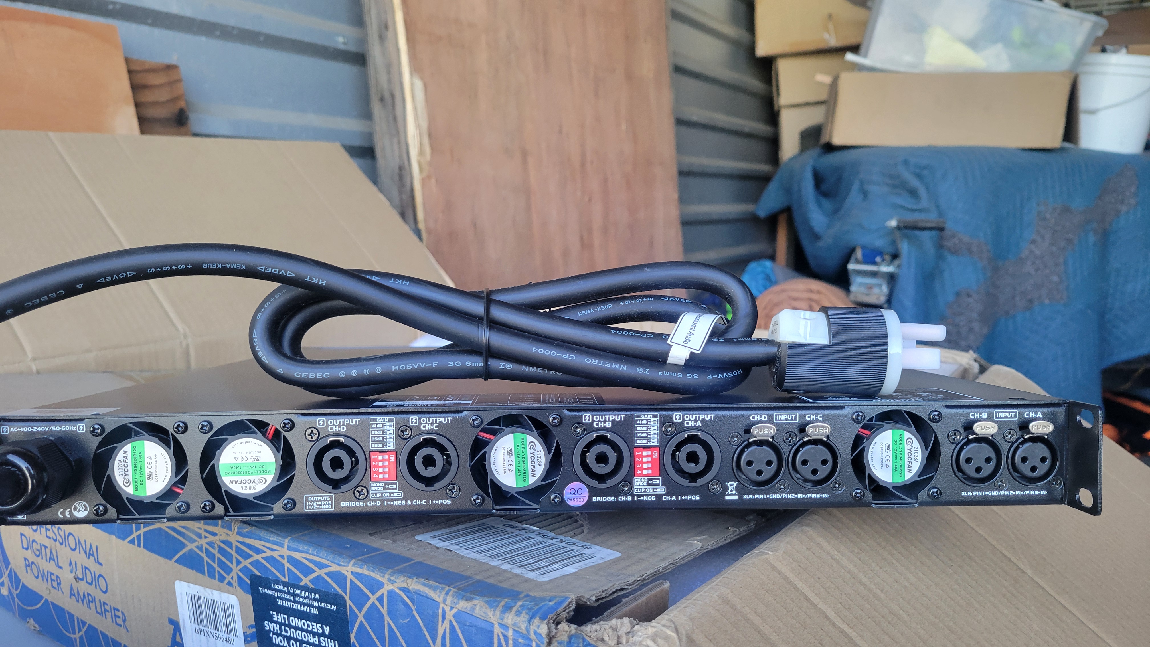 These are awesome amplifiers. 8 (yes, eight) channels and each channel has it's own individual DSP. So, one amp could run a sub, two mains, and 4 monitors if you wanted, and each can have it's own independent limiter, EQ, and crossover settings. DSP is controlled on a PC, amplifier is connected via LAN or direct wired connection.