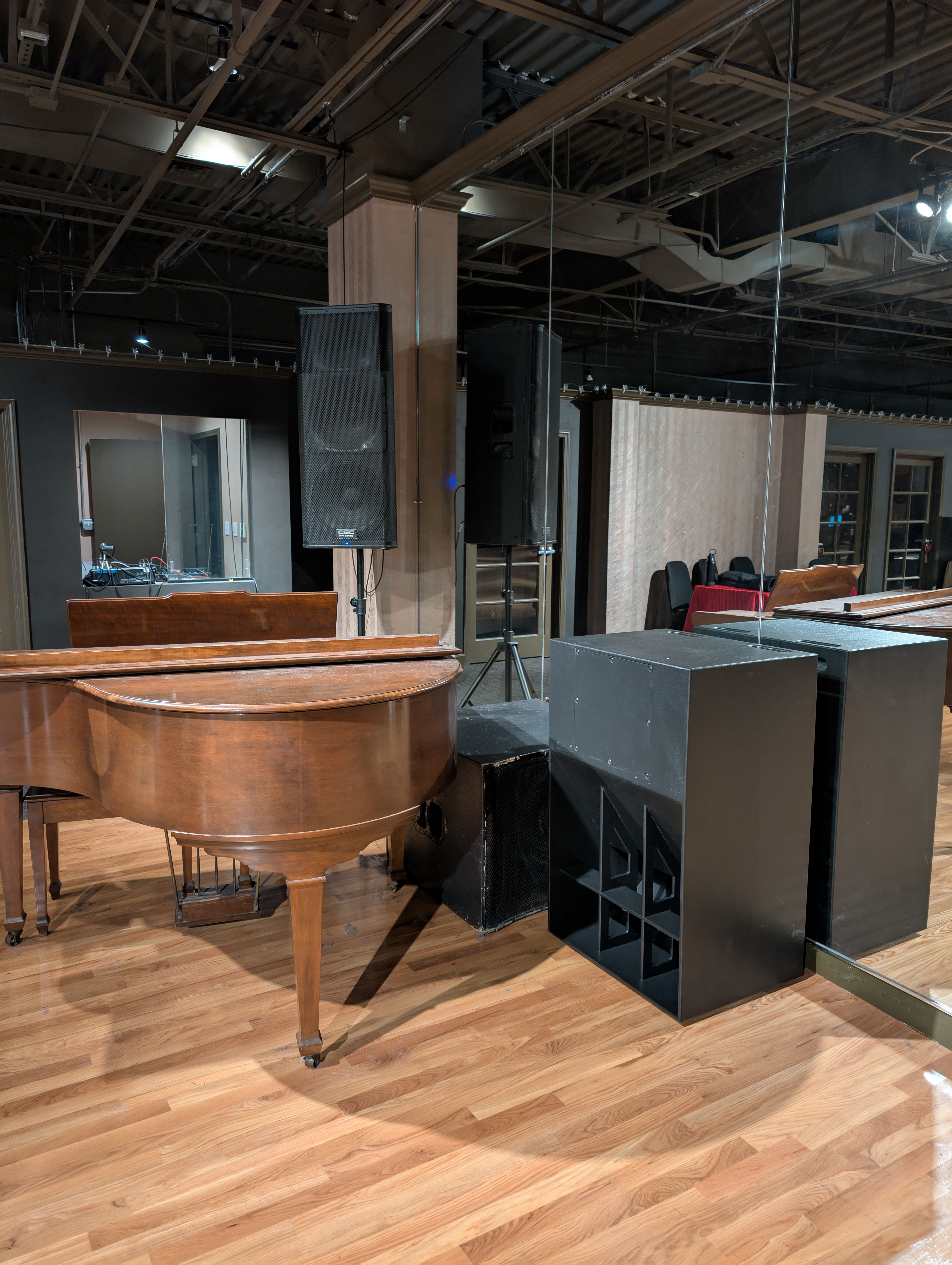 It's an opening into another space. There's a hallway behind the mirrored wall with opening to it on either side of the dance floor, and through the curtains in the center of the mirrored wall. No corners to put the subs in.Rich4349 wrote: ↑Fri Jan 24, 2025 1:44 pm Great job! I'm glad they sound as good as they look. Is that a corner behind the piano? A mirrored wall rather than an opening to an adjoining space? If so, you may want to try putting it fully in the corner, either flat to a wall as you have it, or diagonally facing into the corner.