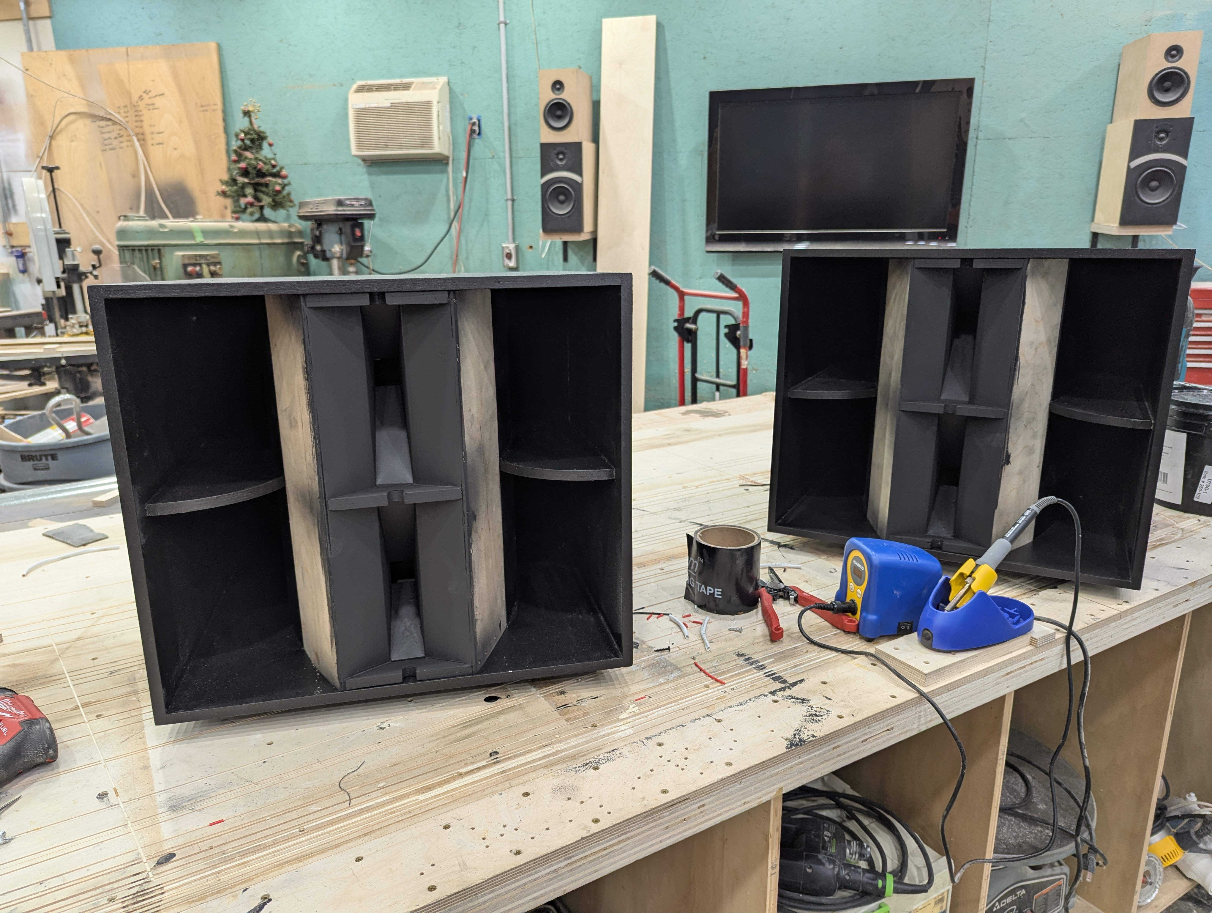 That last picture is actually the final shot I grabbed before shipping it off to my customer. I got caught up rushing at the end and didn’t take nearly as many photos as I wanted. No interior shots of the high-frequency drivers—I just assembled them. They’ve got two solid Eminence compression drivers inside, so they’re built to perform.