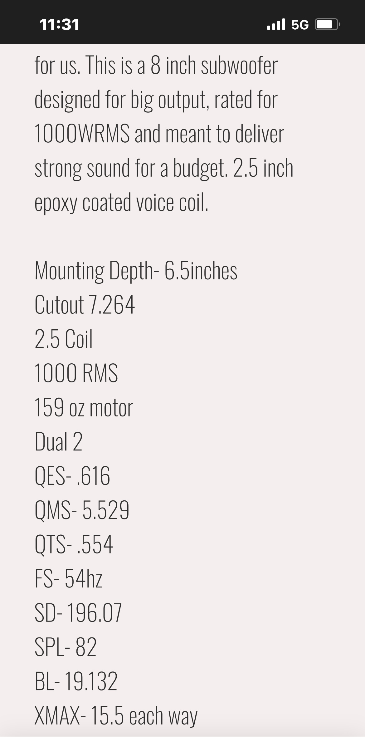 I had never put a meter on the system to measure voltage output of the amp until now, I just sent it as hard as it sounded good and wondered just what these little 8" drivers could handle. For the average car audio bass head enthusiast, I am not ashamed at the output. It digs just about as low as I care to go and for the cost it just can't.