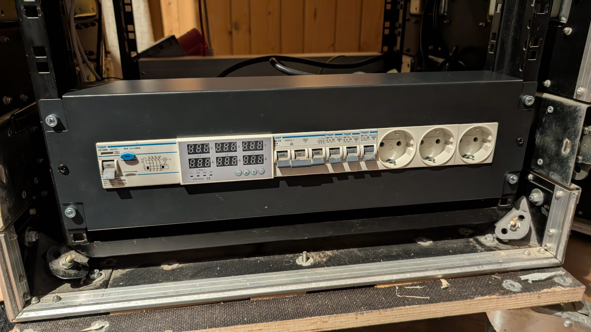 i didn't come to get further on the DRs; but i got the last parts for the power supply, now the rack has fixed wifi and 3 phases to an 32A connector, including a meter for phase balancing :) the little box is packed as full as it can be now :D Sort of violent fitting it all in there