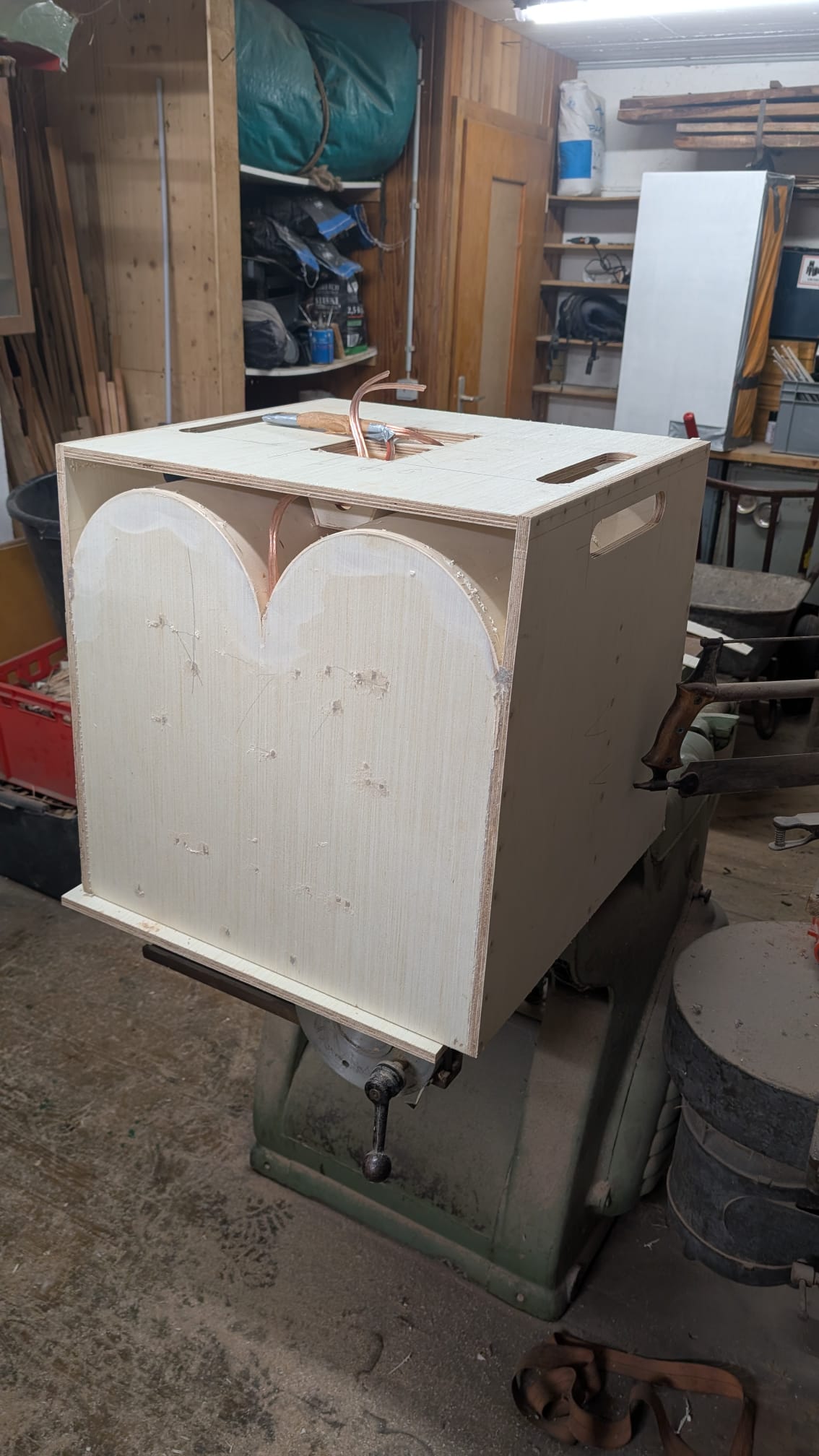 i think i will not do the sidehandles as intended, rather the backcorners in the same height as the backhandle. The front can be just grabbed inside the throat, moving them around in its actual form worked well like that. Also, i could add the sidehandles later when i notice i miss them.