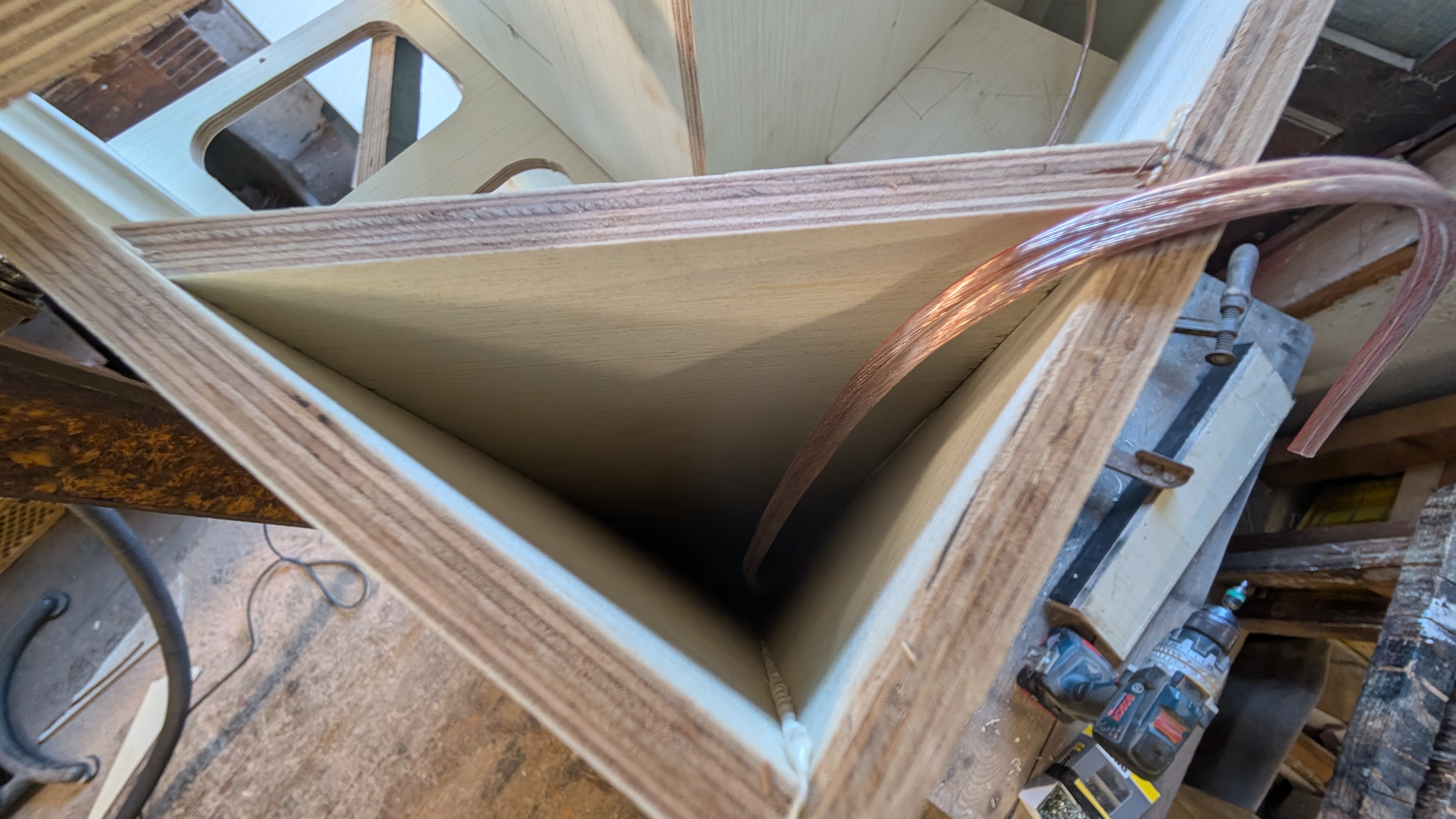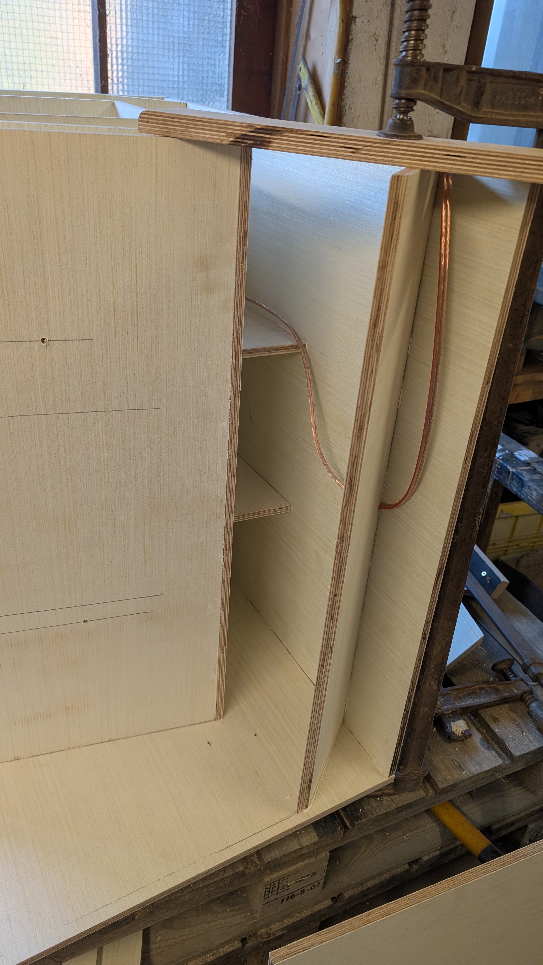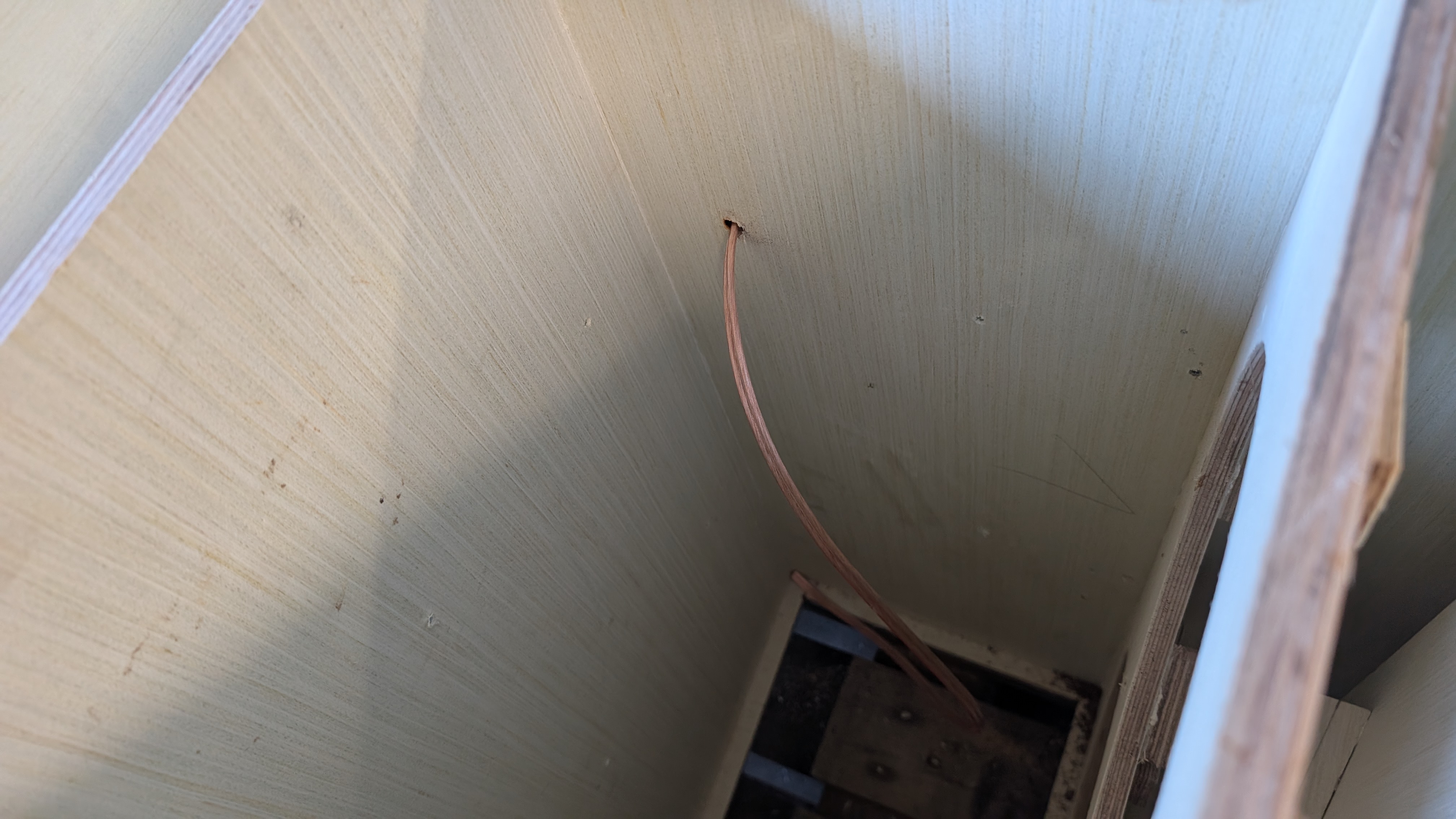 Cable before closing, will fix it to the bracing and later it will be covered in paint when spraying the inside.