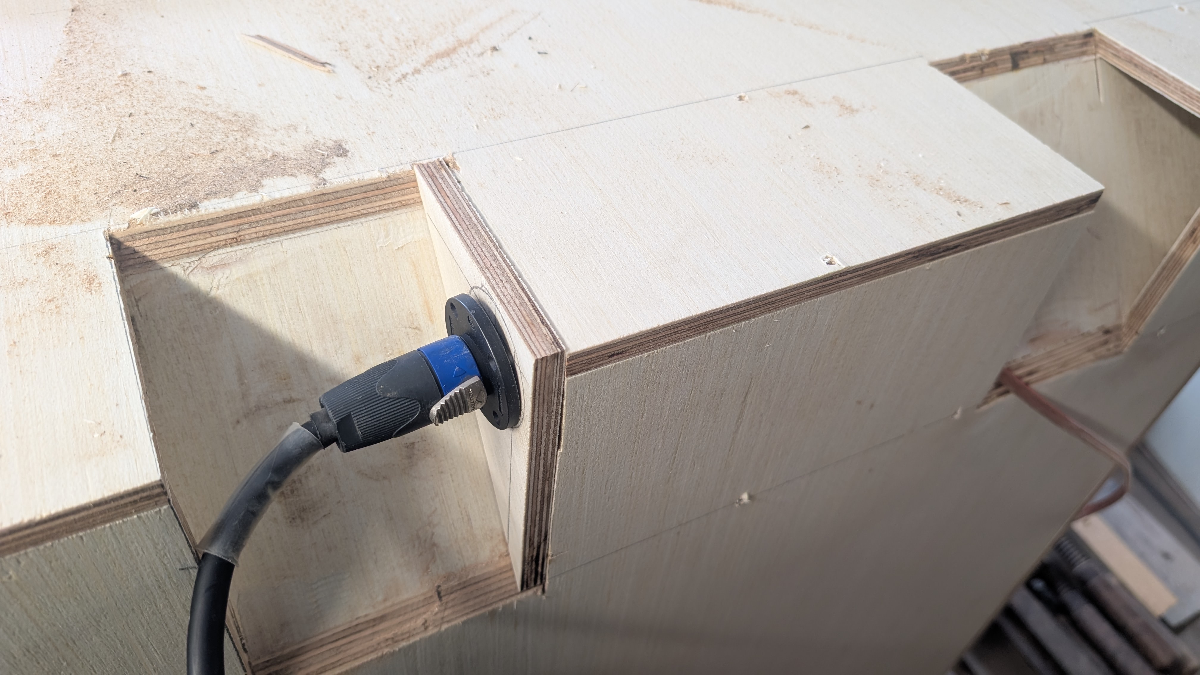 I got the cab finished yesterday, had to think about the connection at first, i think i'll go with that for all of the cabs. Space sufficient, less cables inside, only one point with importance of airtight...and every connector is flush :)